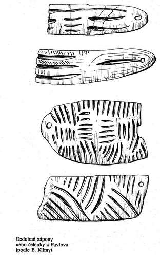 These delicately carved curved oval headdresses or “diadems” are covered in geometric forms and variously composed gently curved lines. If they really were worn as a head decoration, which is indicated by their curvature and perforations at the end, then these selfsame ornamental patterns, so typical of the Pavlov I site, may have expressed the group identity of the wearer.