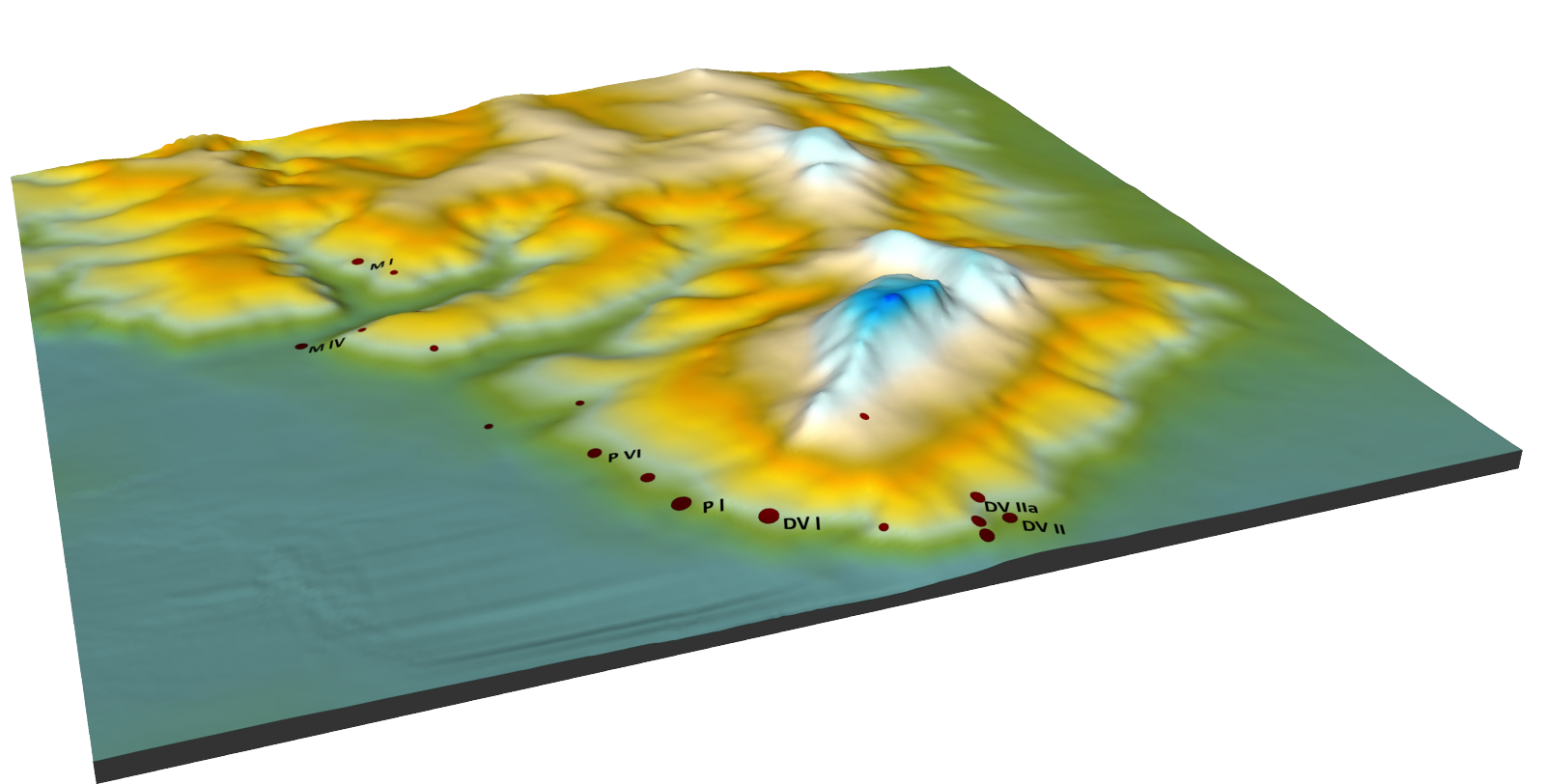 Dolní Věstonice III (location: Rajny): Individual Gravettian settlement units (and probably Aurignacian, too, in the subsoil) lie on a steep slope planted with vines between sites I and II. Surface finds also continue across the field towards the forest (these are evidently Aurignacian). Altitude: 215–290 m. Excavation: Bohuslav Klíma (1969-1970), Jiří Svoboda (1993, 2012), Petr Škrdla (1994–1995).