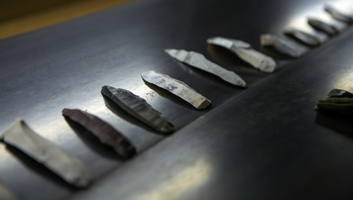 The knapped off blades and flakes could either be used straight away as a functional tool (e.g. for cutting), or could be further reworked, especially by delicate retouch of the edges (by knapping off scale-like microflakes) to create various types of tool.