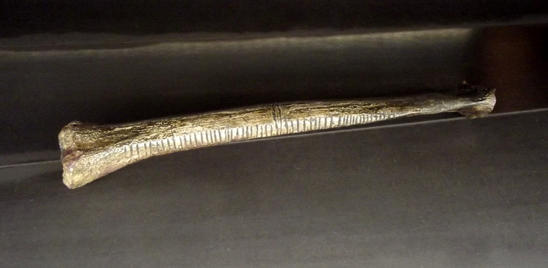 Along virtually its entire length, the bone is covered with short crosswise scratches: in the upper part are engraved 30 of them, 25 are lower down, with the thirtieth and the twenty-fifth scratch extended right across the width of the bone as if representing clear dividing markers.