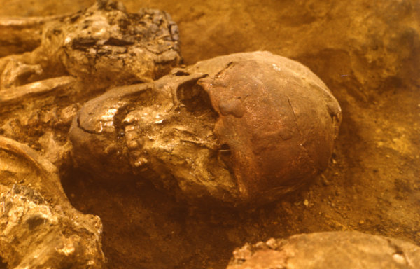 This shared grave of three young people was discovered on 13 August 1986 at the very crown of the Dolní Věstonice II site.