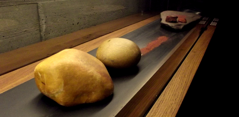 Material: stone – stone slab, large riverine cobblestones and gobbets of mineral ore